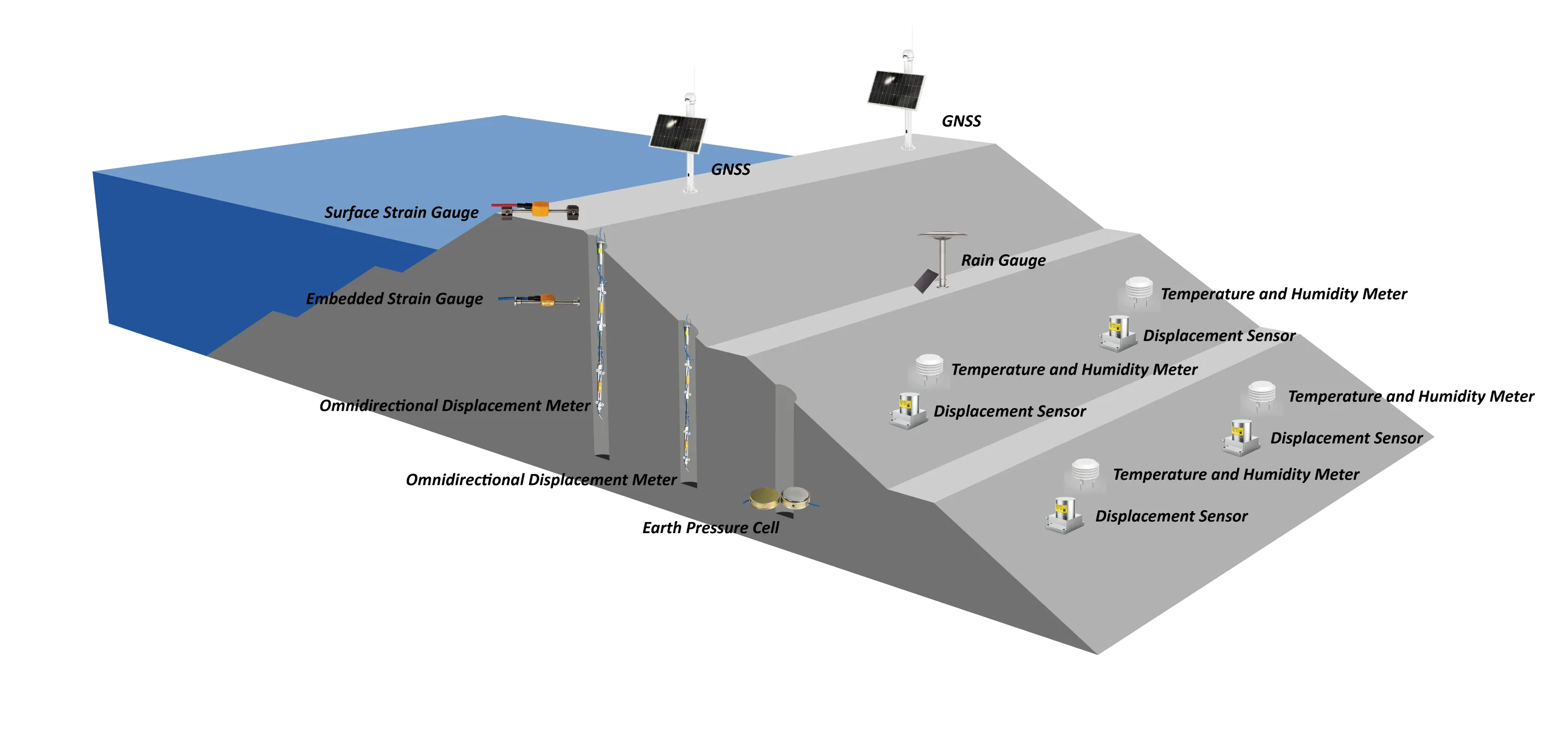 Automatické monitorovanie priehrady je technický systém, ktorý využíva snímacie zariadenia a vzdialené dátové systémy rozmiestnené na telese priehrady, základoch priehrady a okolitých oblastiach na nepretržité monitorovanie konštrukčného stavu, priesakových podmienok a prevádzkovej bezpečnosti priehrady pod vplyvom tlaku vody, geologického pohybu a prírodného prostredia. Tento systém pomáha varovať pred rizikami, ako je deformácia hrádze a priesaky, čím zaisťuje bezpečnú prevádzku funkcií nádrže vrátane protipovodňovej ochrany, výroby energie a zásobovania vodou. Jeho jadro spočíva v zachytení dynamickej interakcie medzi „geológiou priehradného telesa-vodného útvaru“ a vybudovaním bezpečnostnej monitorovacej siete pokrývajúcej celý rozsah priehradného telesa.